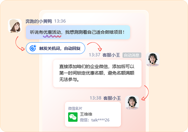 根据关键词自动回复,引导添加企微、加入社群,高效沉淀私域资产